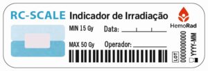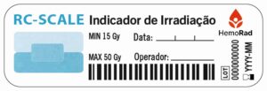 Os indicadores de irradiação RAD-CONTROL SCALE (RC-SCALE) são usados para verificar a irradiação de produtos sanguíneos. Eles são destinados ao uso durante irradiação gama ou de raios X com uma dose alvo de 15 Gy a 50 Gy. A irradiação é indicada por uma descoloração do indicador, que passa de BRANCA ou levemente ROSADA para AZUL e também fornece informações semiquantitativas sobre a dose de radiação.